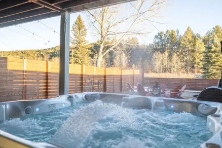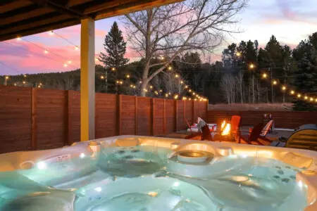 Immerse yourself in the charm of the Black Hills with a stay at this beautifully designed retreat, inspired by the historic train tracks, majestic mountains, and towering pines that define the region. This one-of-a-kind getaway offers 2 King Beds, providing ultimate comfort and relaxation. For additional sleeping arrangements, enjoy 1 Queen Sleeper Sofa and a Pack ‘n Play, perfect for families traveling with little ones. A covered garage ensures convenience and protection for your vehicle. Unwind in the private hot tub, soak in the peaceful surroundings, or gather around the fire pits for cozy evenings under the stars. Privacy fences create a secluded and tranquil atmosphere, allowing you to fully embrace the serenity of the Black Hills. Whether you’re seeking adventure or relaxation, this retreat blends modern luxury with rustic charm for an unforgettable experience.